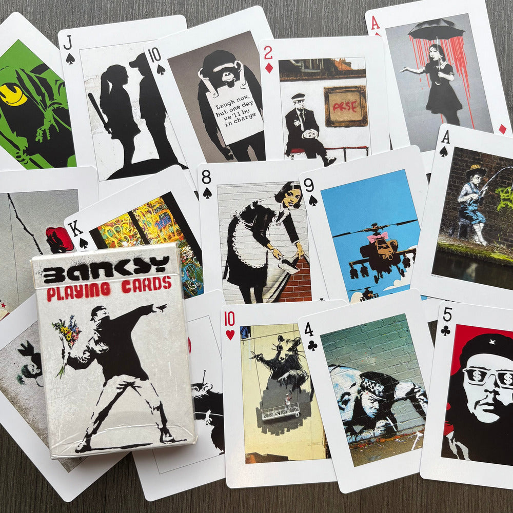 正体不明のアーティスト、バンクシーの作品を描いたデザインです。