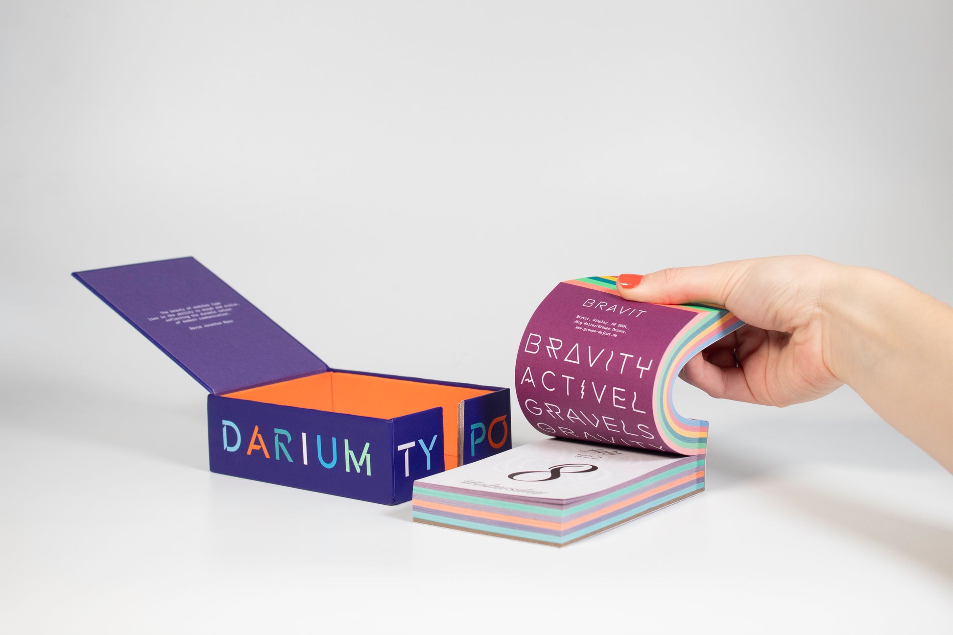 各裏面には、使用されたフォントの名称とサンプルの文字列、そのフォントのデザイナーのWebサイトのURLが記載され、タイポグラフィーのサンプルブックとしても充実の内容。