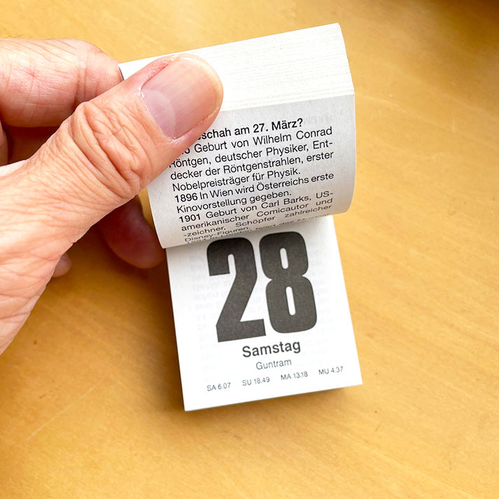 毎日めくるタイプのカレンダーで表記は全てドイツ語。