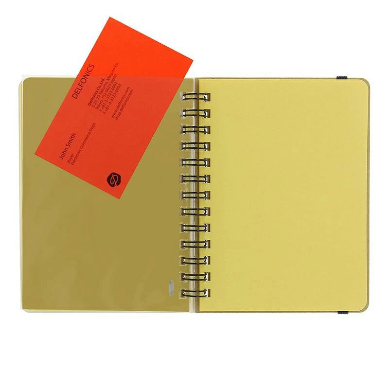 サイズは、コンパクトで使い勝手の良いMサイズ。中面は、通常のロルバーン ポケット付メモと同様に、全ページミシン目付きの5mm方眼です。紙はクリーム色の上質紙で、インクのにじみや裏写りも気になりません。巻末にはクリアポケットが付いています。
