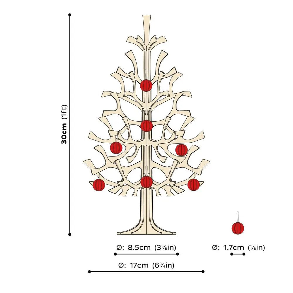 Lovi ロヴィ もみの木 クリスマスツリー 30cm ナチュラルウッド ミニボール ブライトレッド 8個付き