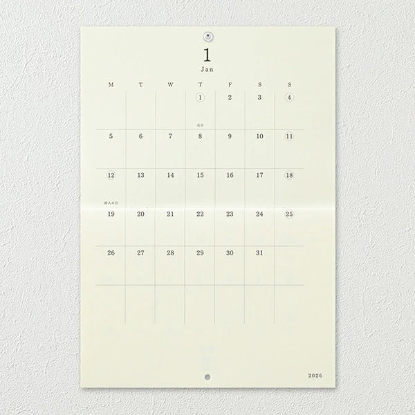内 容 : カレンダー見開き12ページ(2026年1月~12月/月曜始まり)