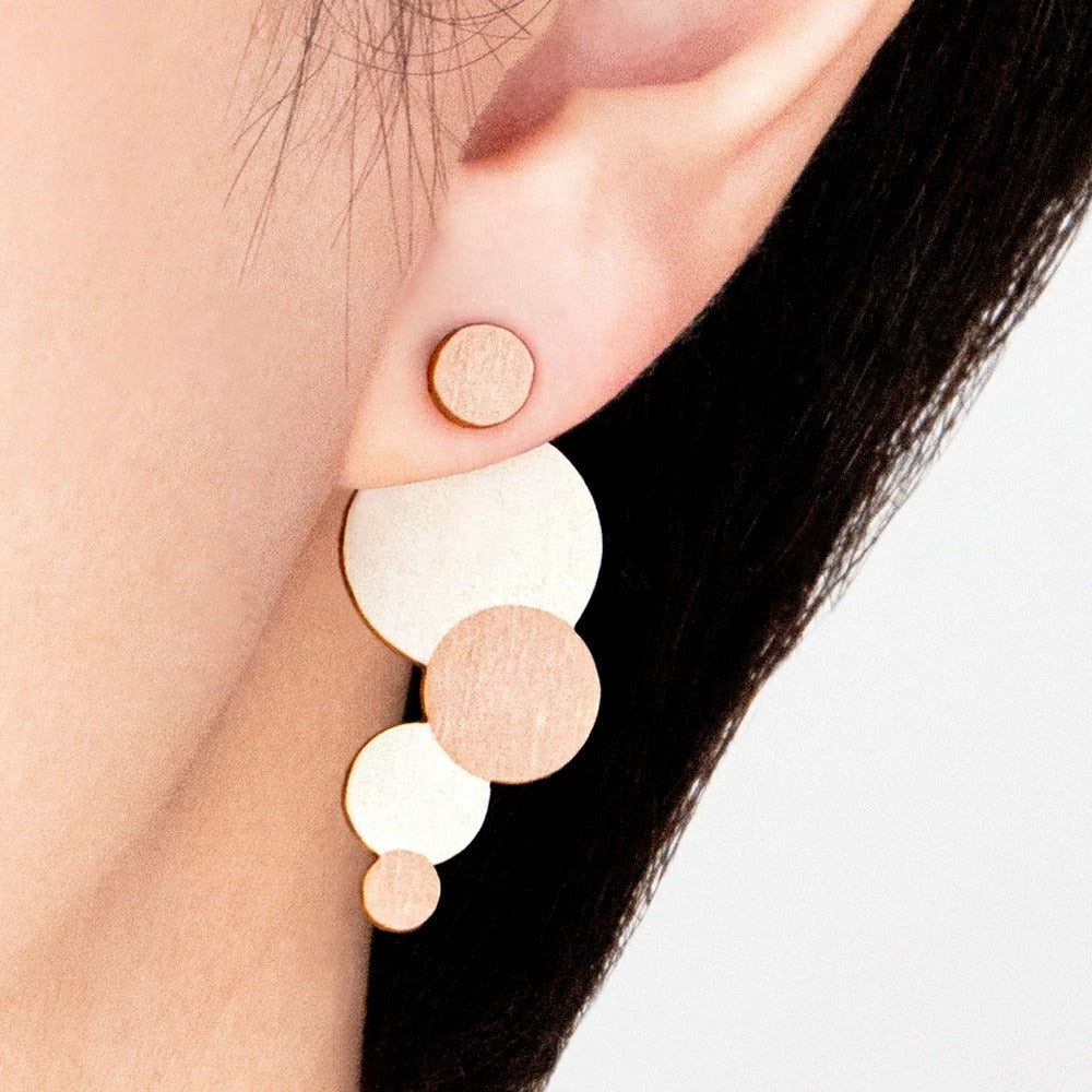 泡のように円が重なり合っている立体感のあるデザインのピアスです。