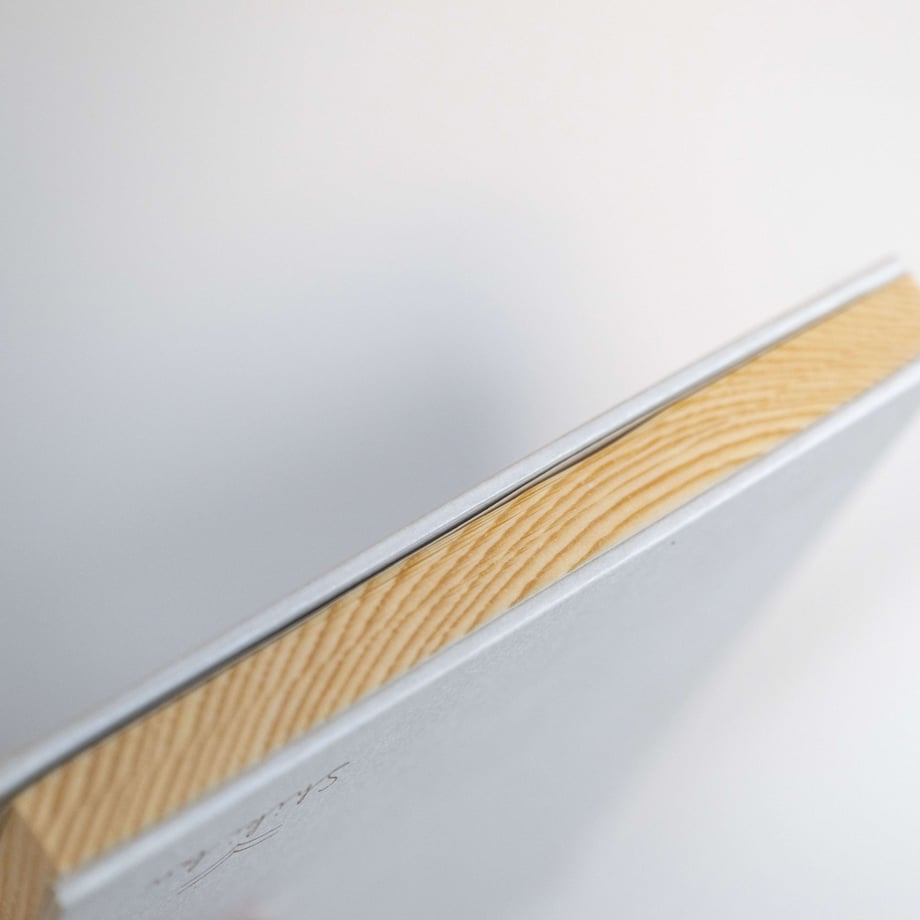 B6サイズの木のノートは、「ハードカバー」と「ドイツ装」で仕立てた特別な一冊。