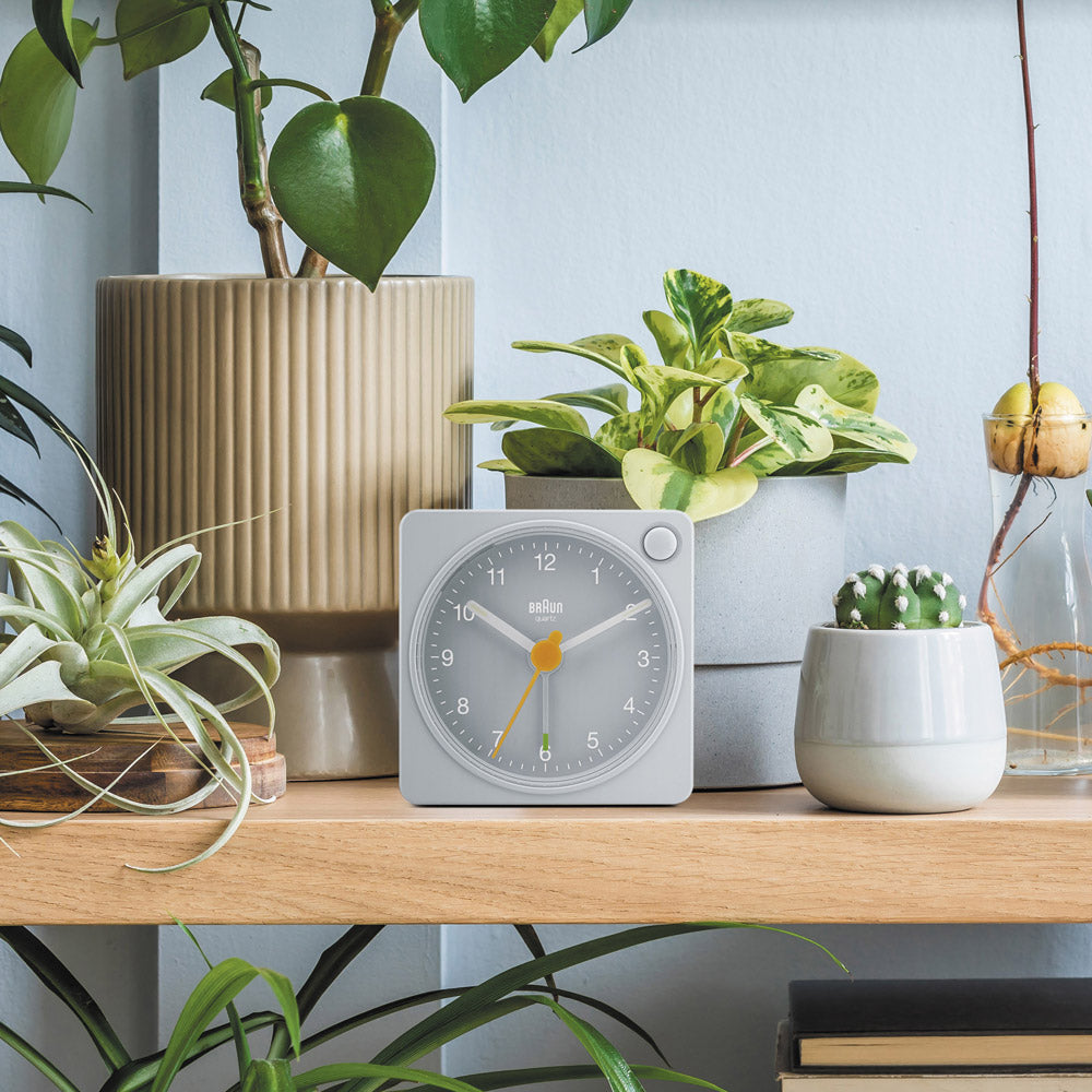 クラシックかつミニマルな正方形。既存の完成されたデザインを損なわないよう、デザインと実用性を考えて配置されたボタンが、BRAUNらしいデザイン性を保ちつつ、既存モデルとは違った新鮮な印象を与えてくれます。 針に配されたグリーン・イエローは視認性を考慮した色使いでブラウンの象徴的なカラーリング。 暗闇でも発光するルミナス針を採用しているので、夜間の利用も心配ありません。 ベッドサイドやデスクでの使用はもちろん、洗面所、玄関、トイレ、キッチンなどの小スペースにもおすすめ。 軽量で持ち運びしやすいので、旅行や出張などに持って行くコンパクトクロックとしてもよさそうですね。